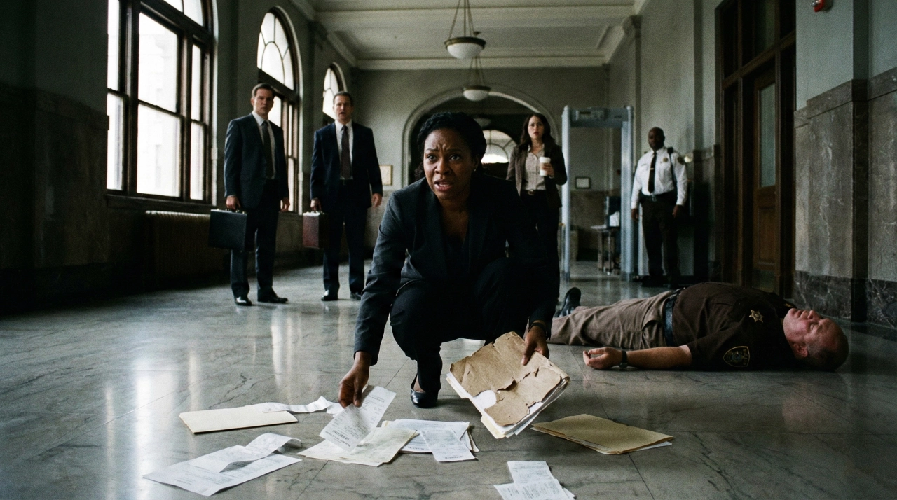 People had stopped in the hallway. A clerk with a coffee cup. Two lawyers with briefcases. A security guard by the metal detector. All frozen. All watching.